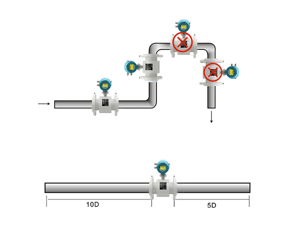 電極的安裝要求較高,一般高度為管道口徑的1/10,且須電極的安裝保持水平。