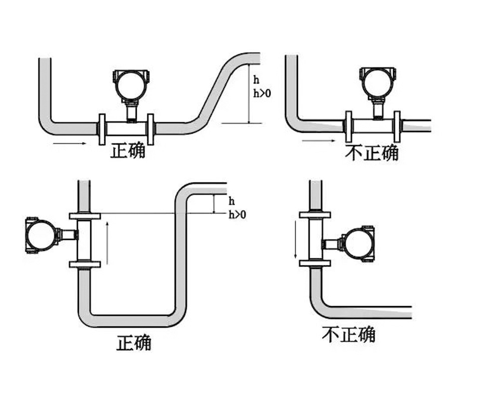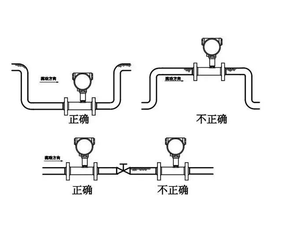 流量計安裝在彎頭、死角處或者直管前后均應(yīng)保證一定的直管段,其中進口端的直管長度不得少于10倍管道直徑,出口端的直管長度不得少于5倍管道直徑。